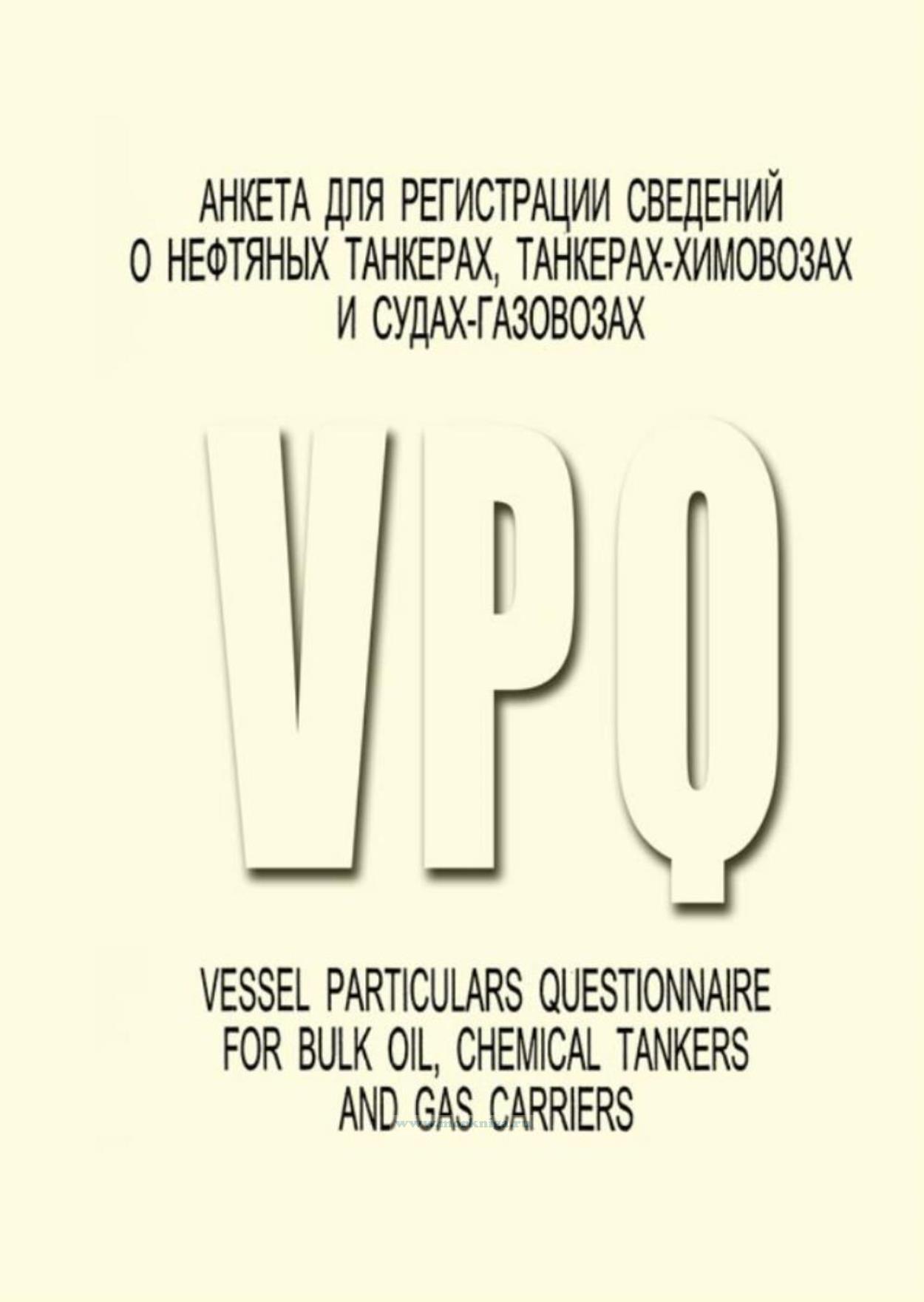 This Vessel Particulars Questionnaire asks over 700 separate questions about ship particulars and required or customary on board documents which are of a permanent or semi-permanent nature, primarily related to safety and pollution prevention. The questions are indexed by numbers and are logically grouped into separate Chapters.