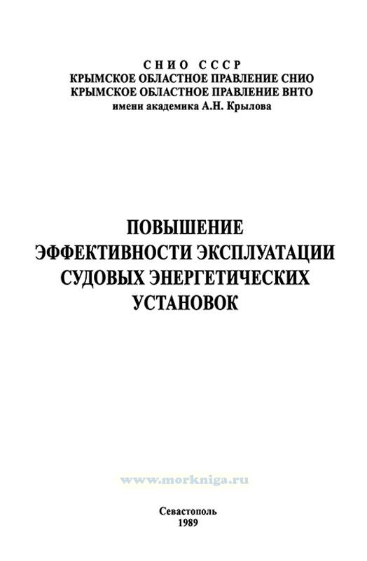 Рассмотрены некоторые направления повышения эффективности эксплуатации судовых энергетических установок, предложены пути ее оценки, даны практические рекомендации по подготовке обслуживающего персонала и по эксплуатации технических средств в нормальных и аварийных условиях.