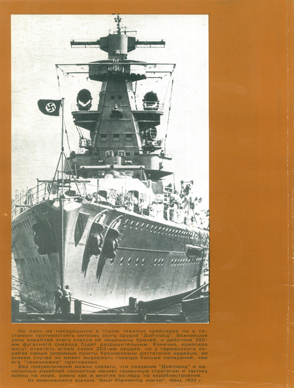 Без преувеличений можно сказать, что создание Дойчланд и однотипных кораблей полностью меняет привычную стратегию и тактику войны на море, равно как и многие взгляды на кораблестроение. Naval Engineering Journal, июнь 1933 г. История проектирования, строительства, боевой службы броненосных кораблей типа Дойчланд, фото, схемы.