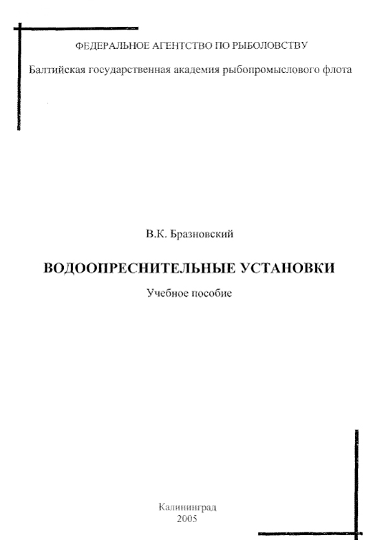 В учебном пособии Водоопреснительные установки рассматриваются схемы и конструкции судовых водоопреснительных установок, требования к пресной воде для морских судов, оформление судовой документации по водоопреснительной установке, экономический расчет при подборе установки в процессе её модернизации.