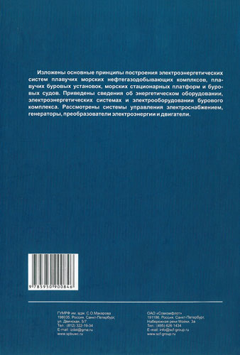 Изложены основные принципы построения электроэнергетических систем плавучих морских нефтегазодобывающих комплексов, плавучих буровых установок, морских стационарных платформ и буровых судов. Приведены сведения об энергетическом оборудовании, электроэнергетических системах и электрооборудовании бурового комплекса. Рассмотрены системы управления электроснабжением, генераторы, преобразователи электроэнергии и двигатели.