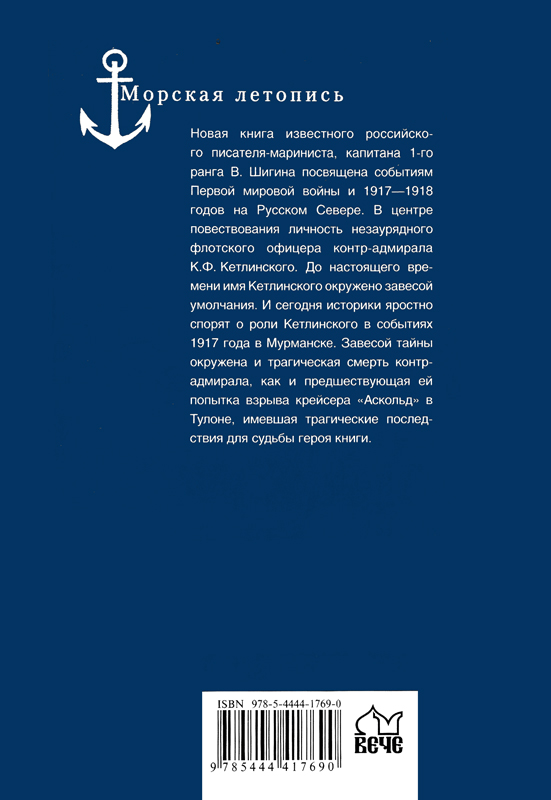Новая книга известного российского писателя-мариниста, капитана 1-го ранга В. Шигина посвящена событиям Первой мировой войны и 1917— 1918 годов на Русском Севере.