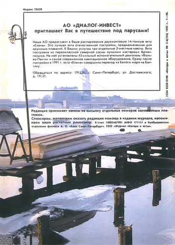 Журнал "Катера и яхты" – специализированное издание с четкой целевой аудиторией ведущий в России морской журнал для профессионалов и любителей. Освещает вопросы отдыха и спорта на воде, создания и эксплуатации водно-моторной, парусной техники.