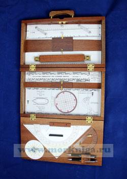 Отличный набор,необходимый каждому штурману, в который входят : плоттер 2 шт, линейка параллельная, транспортир штурманский, транспортир чертежный, рейсшина, измеритель штурманский 2 шт., масштабная линейка, авторучка, карандаш.