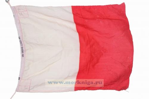 Флаг международного свода сигналов Хотэл (H, Hotel), флаг МСС Хотэл. Значение: "У меня есть на борту есть лоцман". I have a pilot on board.