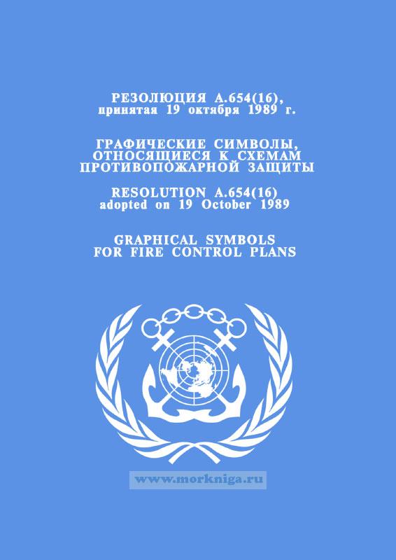 Резолюция А.654(16) "Графические символы, относящиеся к схемам противопожарной защиты" включена в Сборник № 1 резолюций ИМО. Collection No.1 of IMO Resolutions . На основе Резолюции разработан плакат "Противопожарные знаки ИМО" IMO Fire Control Signs (A.654).