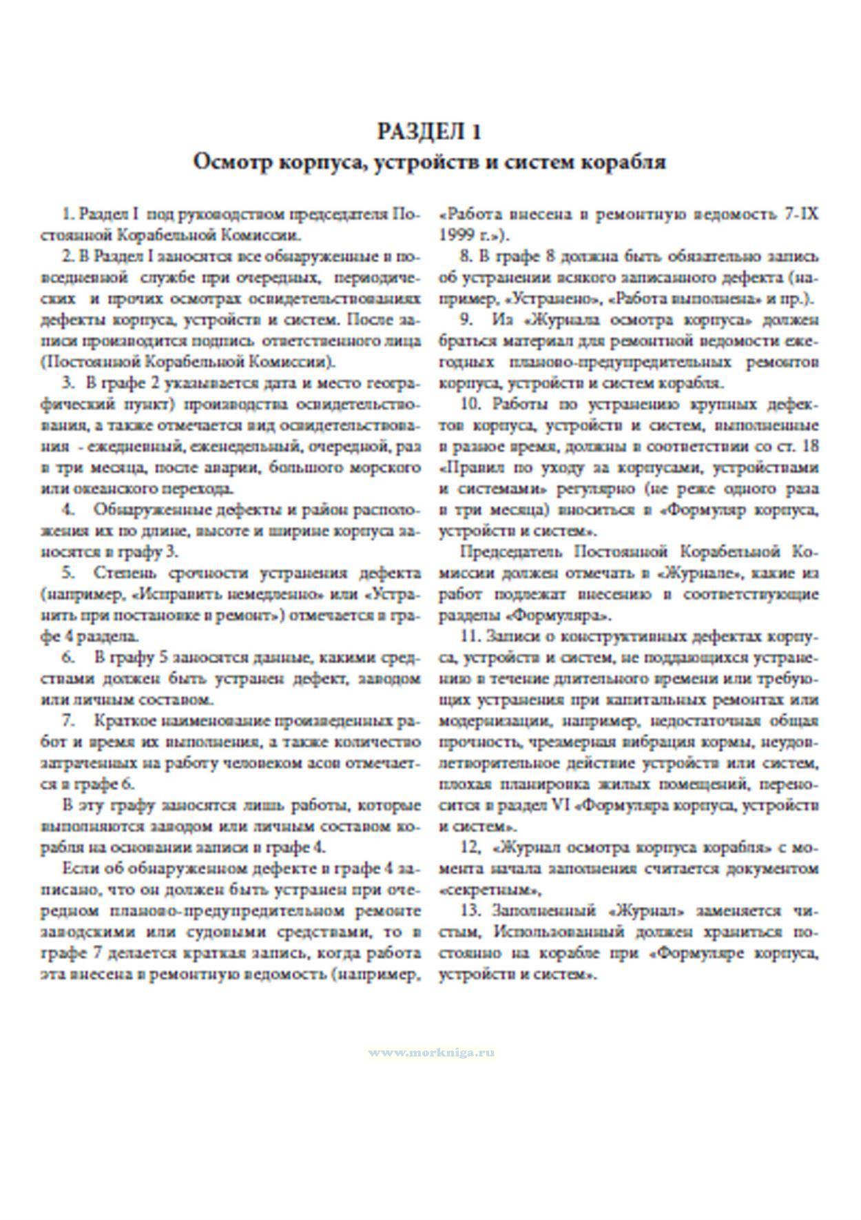 9. Из «Журнала осмотра корпуса» должен браться материал для ремонтной ведомости ежегодных планово-предупредительных ремонтов корпуса, устройств и систем корабля.
