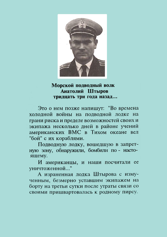 Автор этих документально-художественных повестей, рассказов, миниатюр - контр-адмирал в отставке Анатолий Тихонович Штыров. 20 лет он проплавал на подводных лодках, из них командиром - 8 лет.