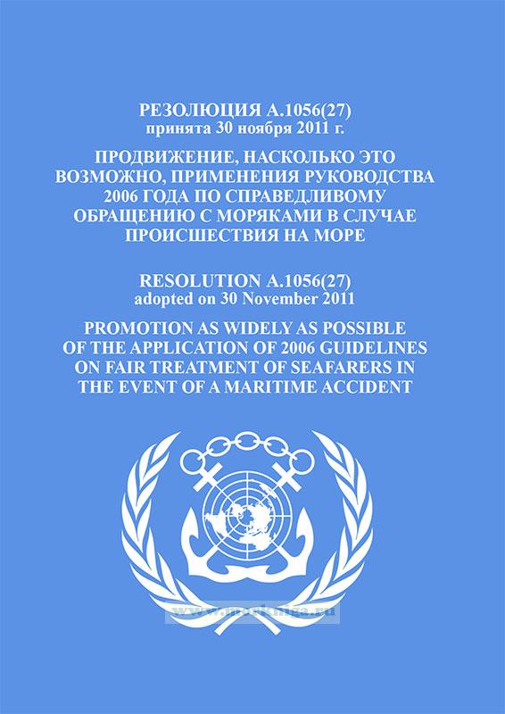 Резолюция А.1056(27) "Продвижение, насколько это возможно, применения руководства 2006 года по справедливому обращению с моряками в случае происшествия на море" включена в Сборник № 42 резолюций ИМО. Collection No.42 of IMO Resolutions