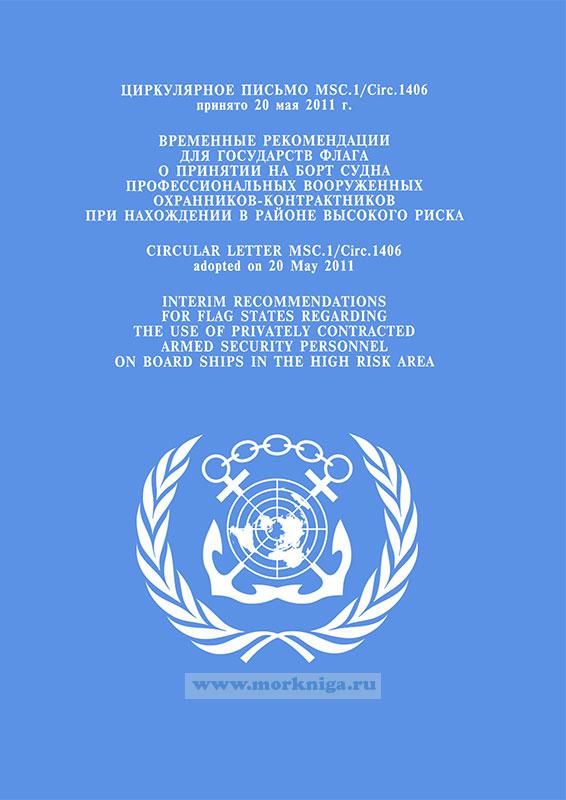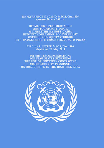 Циркулярное письмо MSC.1/Circ.1406 "Временные рекомендации для государств флага о принятии на борт судна профессиональных вооруженных охранников-контрактников при нахождении в районе высокого риска" включено в Сборник № 41 резолюций ИМО. Collection No.41 of IMO Resolutions