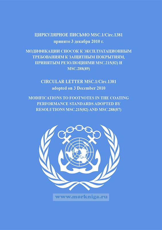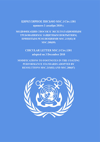 Циркулярное письмо MSC.1/Circ.1381 "Модификации сносок к эксплуатационным требованиям к защитным покрытиям, принятым резолюциями MSC.215(82) и MSC.288(89)" включено в Сборник № 40 резолюций ИМО. Collection No.40 of IMO Resolutions