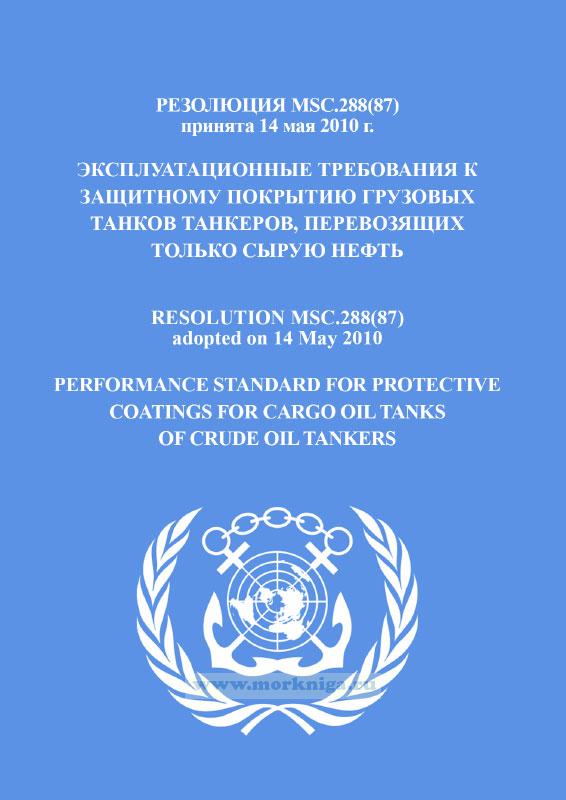 Резолюция MSC.288(87) "Эксплуатационные требования к защитному покрытию грузовых танков танкеров,перевозящих только сырую нефть" включена вСборник № 38 резолюций ИМО. Collection No.38 of IMO Resolutions