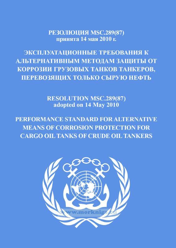 Резолюция MSC.289(87) "Эксплуатационные требования к альтернативным методам защиты от коррозии грузовых танков танкеров, перевозящих только сырую нефть" включена в Сборник № 38 резолюций ИМО. Collection No.38 of IMO Resolutions