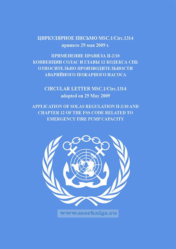 Циркулярное письмо MSC.1/Circ.1314 "Применение правила II-2/10 конвенции СОЛАС и главы 12 Кодекса СПБ относительно производительности аварийного пожарного насоса" включено в Сборник № 37 резолюций ИМО. Collection No.37 of IMO Resolutions