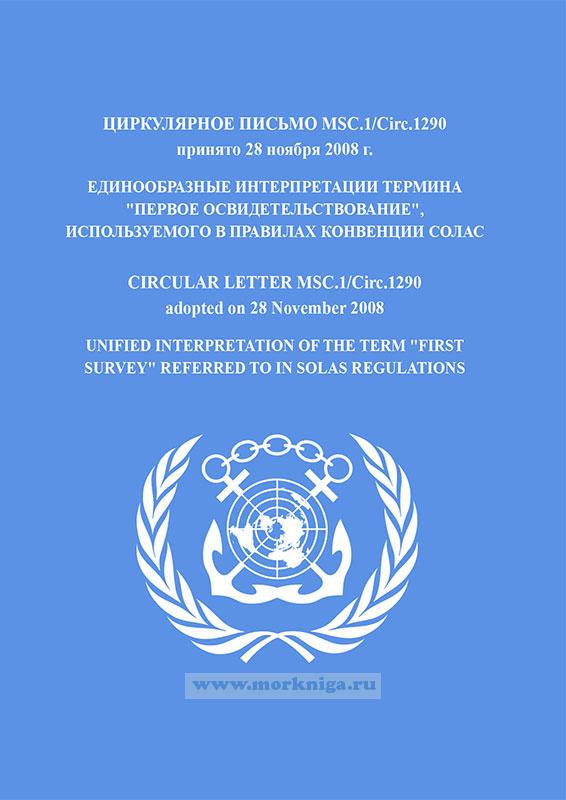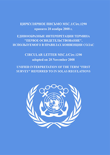 Циркулярное письмо MSC.1/Circ.1290 "Единообразные интерпретации термина "первое освидетельствование", используемого в правилах конвенции СОЛАС" включено в Сборник № 36 резолюций ИМО. Collection No.36 of IMO Resolutions