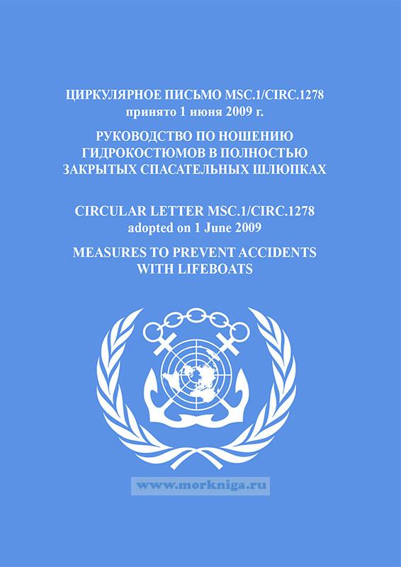 Циркулярное письмо MSC.1/Circ.1278 "Руководство по ношению гидрокостюмов в полностью закрытых спасательных шлюпках" включено в Сборник № 35 резолюций ИМО. Collection No.35 of IMO Resolutions