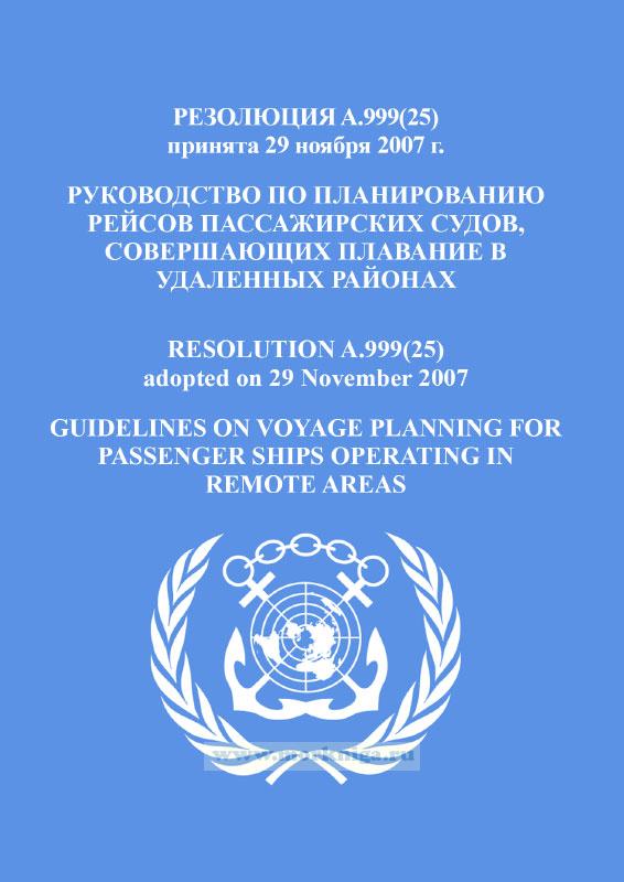 Резолюция A.999(25) "Руководство по планированию рейсов пассажирских судов, совершающих плавание в удаленных районах" включена в Сборник № 34 резолюций ИМО. Collection No.34 of IMO Resolutions