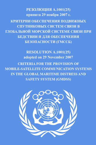 Резолюция A.1001(25). Критерии обеспечения подвижных спутниковых систем связи в глобальной морской системе связи при бедствии и для обеспечения безопасности (ГМССБ) включена в Сборник № 34 резолюций ИМО. Collection No.34 of IMO Resolutions