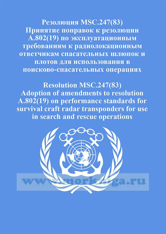 Резолюция MSC.247(83) Принятие поправок к резолюции A.802(19) по эксплуатационным требованиям к радиолокационным ответчикам спасательных шлюпок и плотов для использования в поисково-спасательных операциях