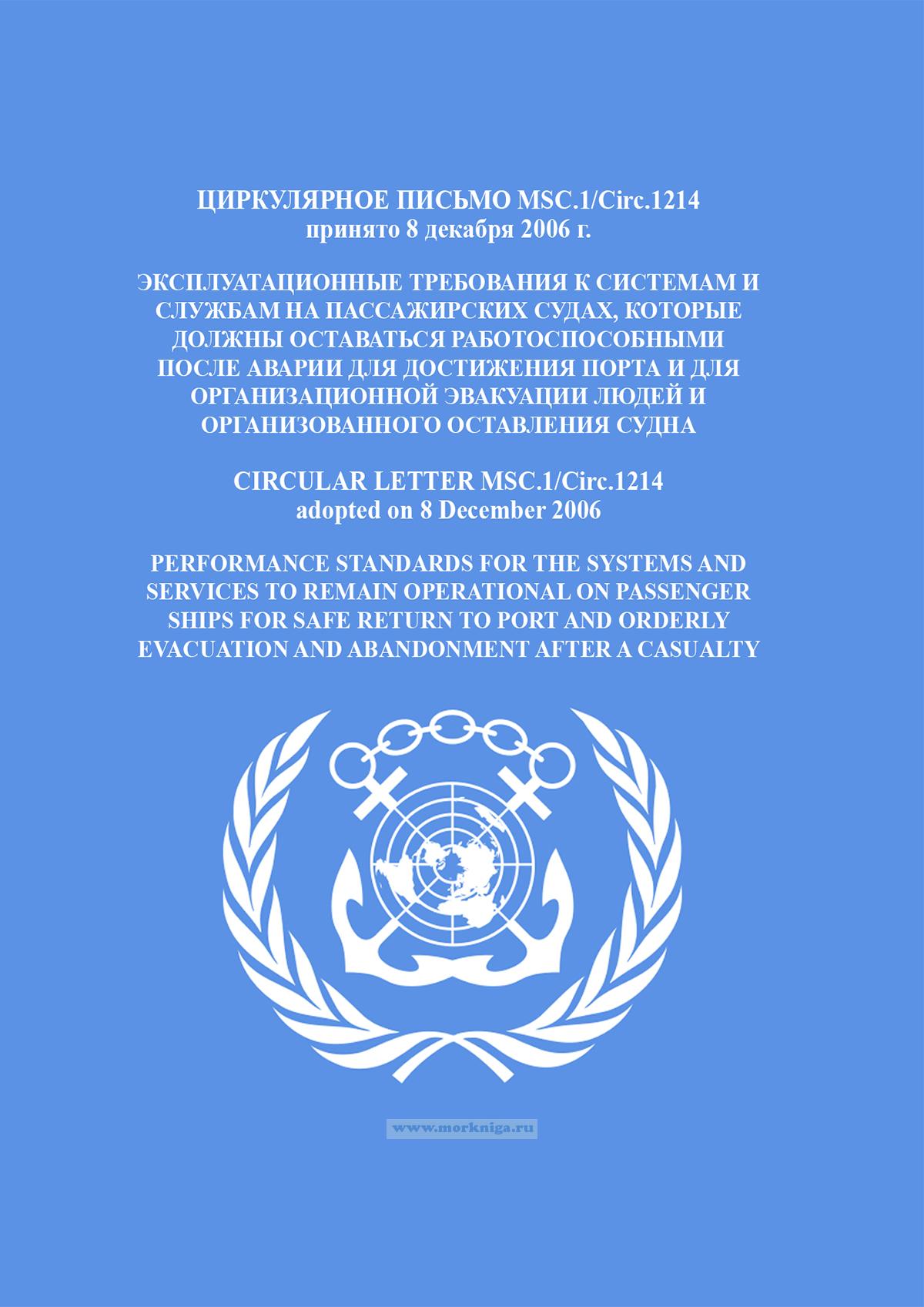 Циркулярное письмо MSC.1/Circ.1214 "Эксплуатационные требования к системам и службам на пассажирских судах, которые должны оставаться работоспособными после аварии для достижения порта и для организационной эвакуации людей и организованного оставления судна" включено в Сборник № 32 резолюций ИМО. Collection No.32 of IMO Resolutions