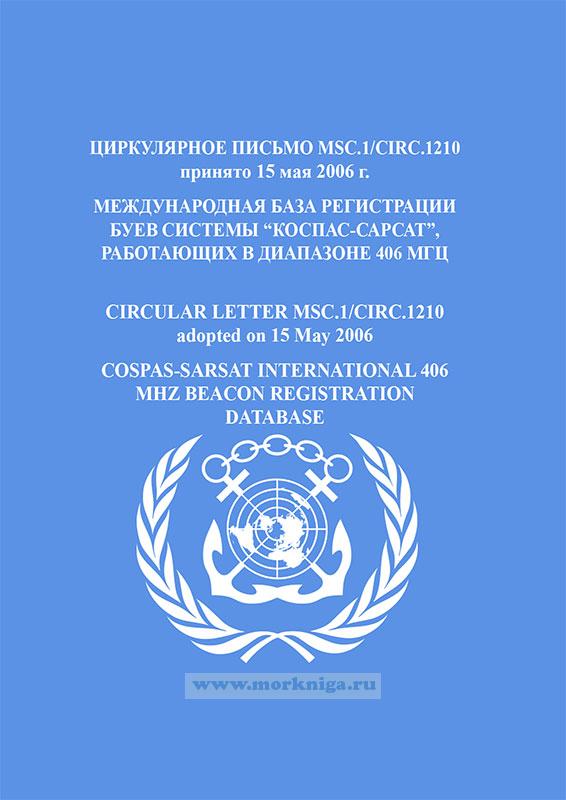 Циркулярное письмо MSC.1/Circ.1210 "Международная база регистрации буев системы "КОСПАС-САРСАТ", работающих в диапозоне 406 МГц" включено в Сборник № 31 резолюций ИМО. Collection No.31 of IMO Resolutions