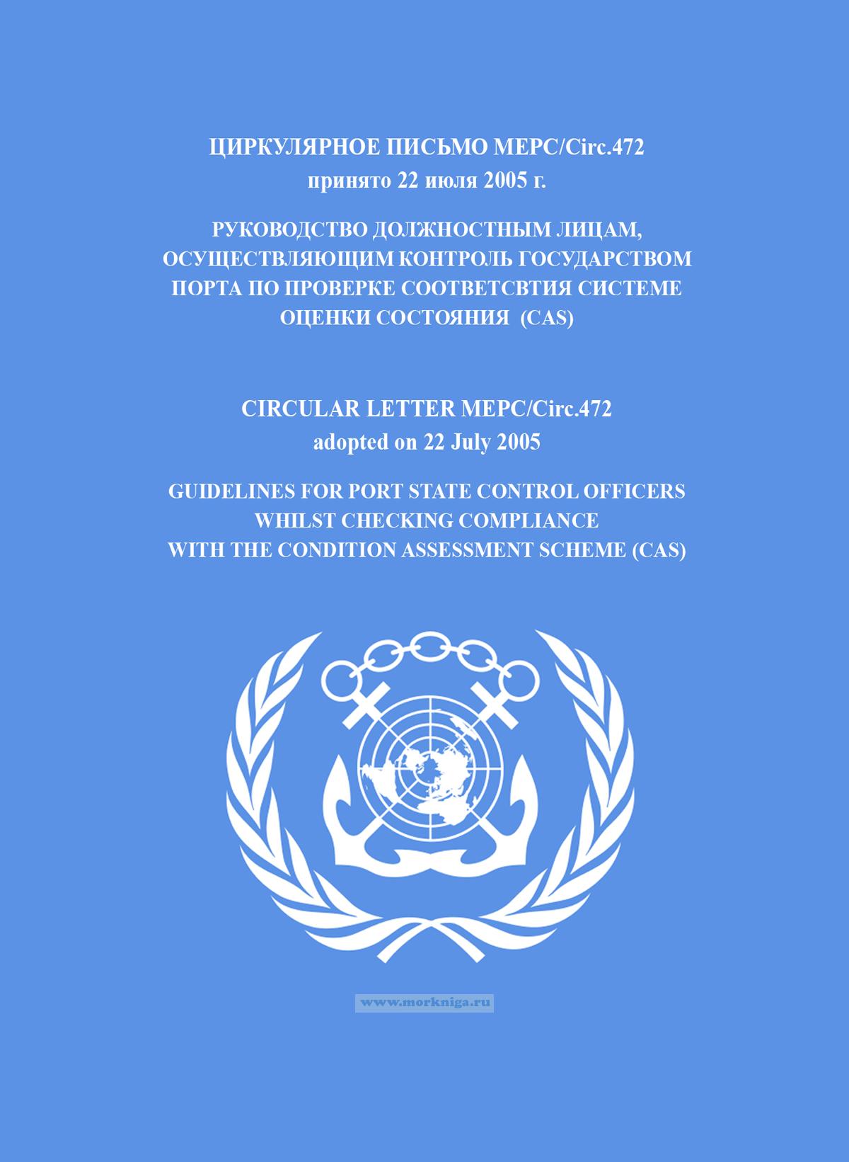 Циркулярное письмо МЕРС/Circ.472. "Руководство должностным лицам, осуществляющим контроль государством порта по проверке соответствия системе оценки состояния (CAS)" включено в Сборник № 30 резолюций ИМО. Collection No.30 of IMO Resolutions