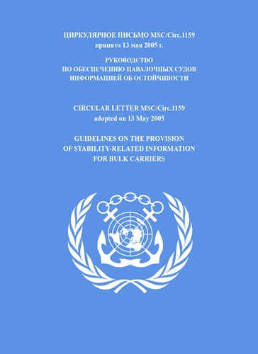 Циркулярное письмо MSC/Circ.1159 "Руководство по обеспечению навалочных судов информацией об остойчивости" включено в Сборник № 29 резолюций ИМО. Collection No.29 of IMO Resolutions