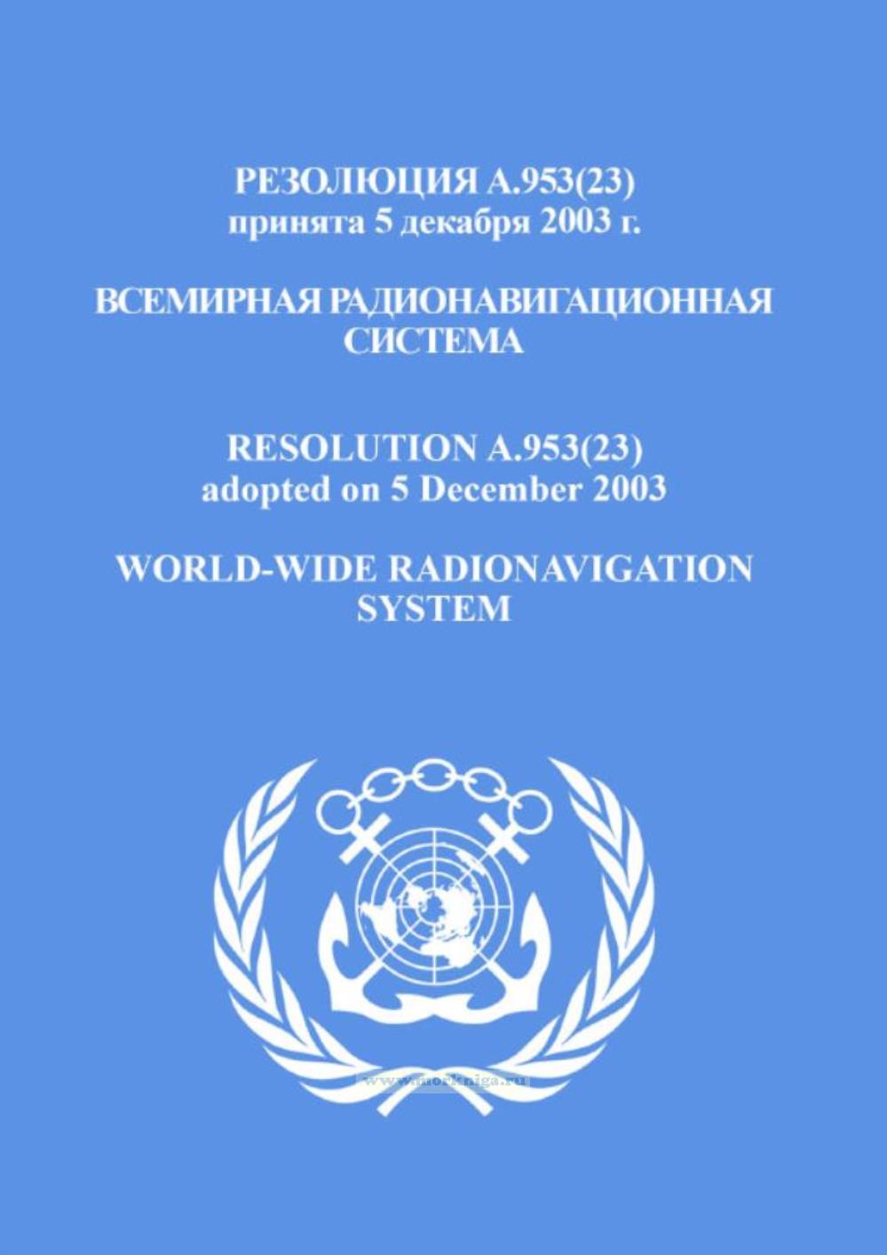 Резолюция A.953(23) "Всемирная радионавигационная система" включена в Сборник № 23 резолюций ИМО. Collection No.23 of IMO Resolutions