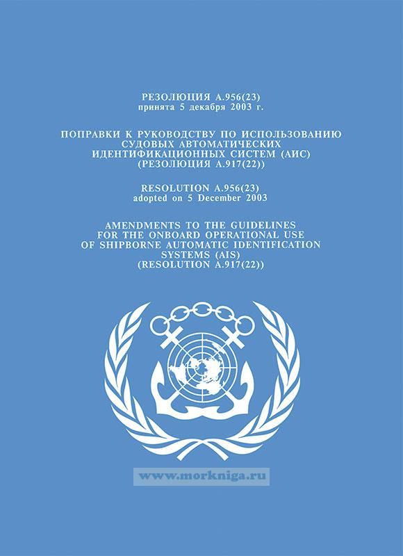 Резолюция A.956(23) "Поправки к руководству по использованию судовых автоматических идентификационных систем (АИС) (резолюция A.917(22))" включена в Сборник № 23 резолюций ИМО. Collection No.23 of IMO Resolutions