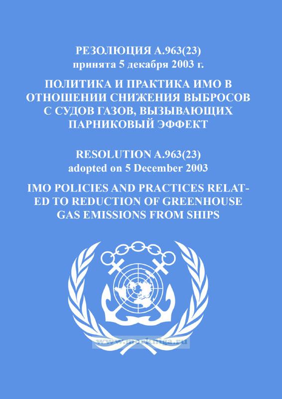 Резолюция A.963(23) "Политика и практика ИМО в отношении снижения выбросов с судов газов, вызывающих парниковый эффект" включена в Сборник № 23 резолюций ИМО. Collection No.23 of IMO Resolutions