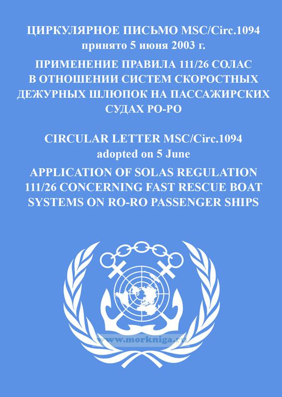Циркулярное письмо MCS.Circ.1094 "Применение правила III/26 СОЛАС в отношении систем скоростных дежурных шлюпок на пассажирских судах РО-РО" включено в Сборник № 22 резолюций ИМО. Collection No.22 of IMO Resolutions