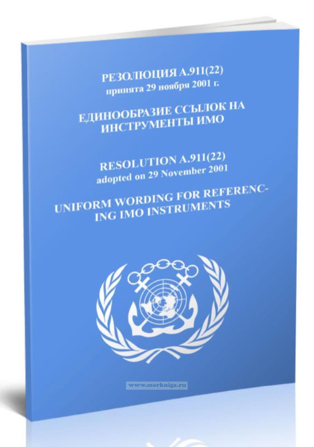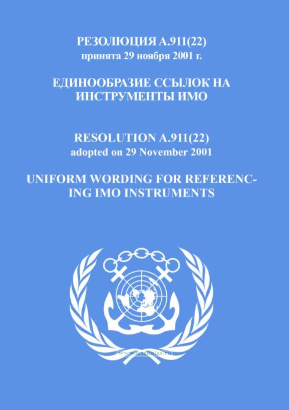 Резолюция A.911(22).Единообразие ссылок на инструменты ИМО включена в Сборник № 18 резолюций ИМО. Collection No.18 of IMO Resolutions