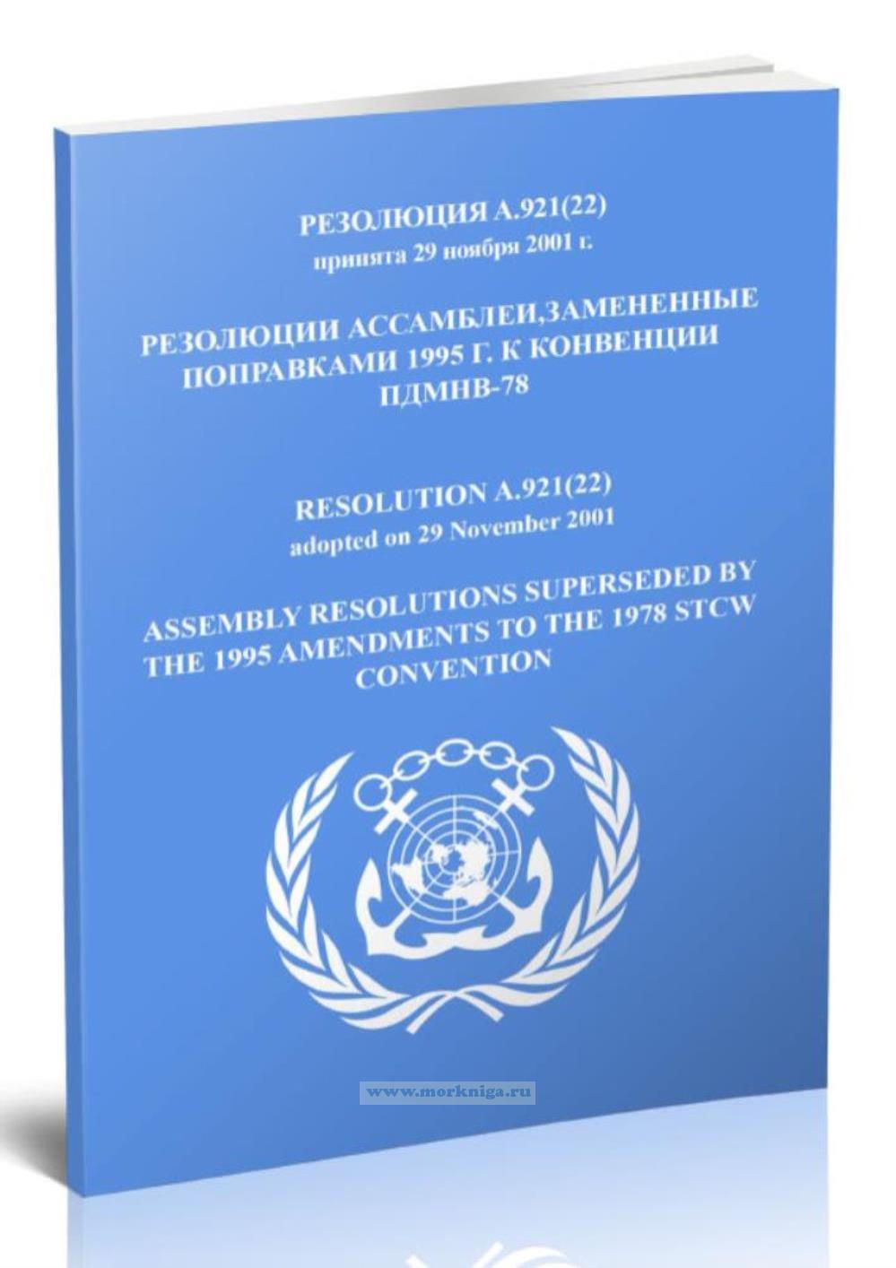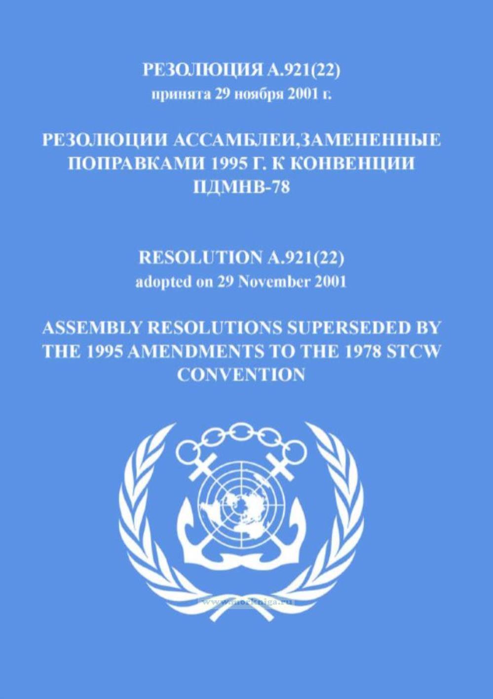 Резолюция A.921(22). Резолюции ассамблеи, замененные поправками 1995 г. к конвенции ПДМНВ-78 включена в Сборник № 18 резолюций ИМО. Collection No.18 of IMO Resolutions