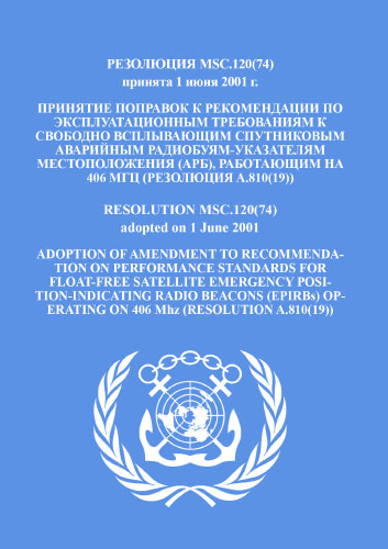 Резолюция MSC.120(74) "Принятие поправок к рекомендации по эксплуатационным требованиям к свободно всплывающим спутниковым аварийным радиобуям-указателям местоположения (АРБ), работающим на 406 МГц (Резолюция A.810(19))" включена в Сборник № 17 резолюций ИМО. Collection No.17 of IMO Resolutions