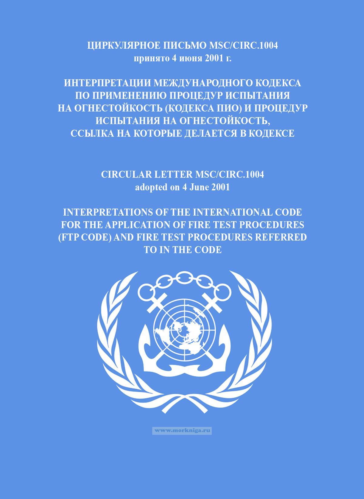 Циркулярное письмо MSC/Circ.1004 "Интерпретации международного Кодекса по применению процедур испытания на огнестойкость (Кодекса ПИО) и процедур испытания на огнестойкость, ссылка на которые делается в Кодексе" включено в Сборник № 17 резолюций ИМО. Collection No.17 of IMO Resolutions