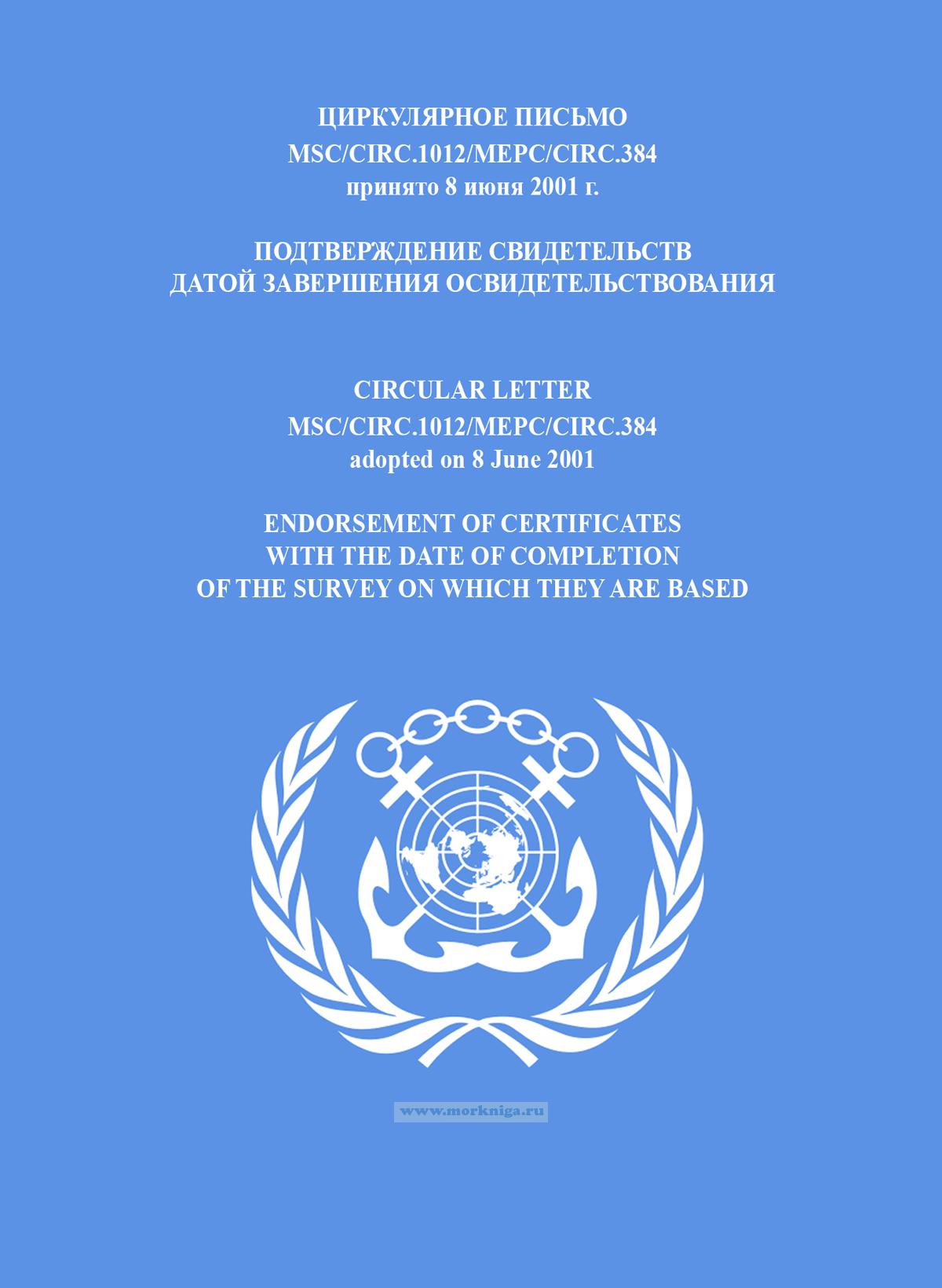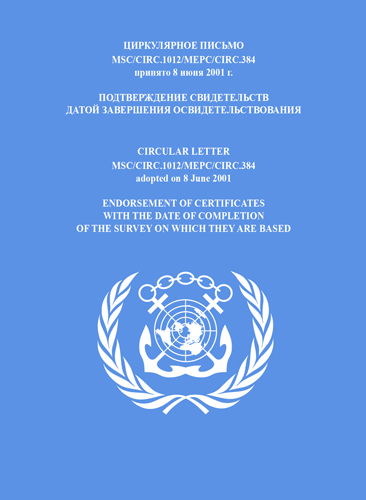 Циркулярное письмо MSC/Circ.1012/MEPC/Circ.384 "Подтверждение свидетельств датой завершения освидетельствования" включено в Сборник № 17 резолюций ИМО. Collection No.17 of IMO Resolutions