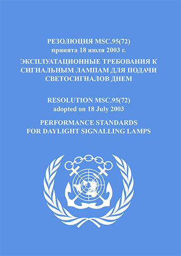 Резолюция MSC.95(72) "Эксплуатационные требования к сигнальным лампам для подачи светосигналов днем" включена в Сборник № 15 резолюций ИМО. Collection No.15 of IMO Resolutions