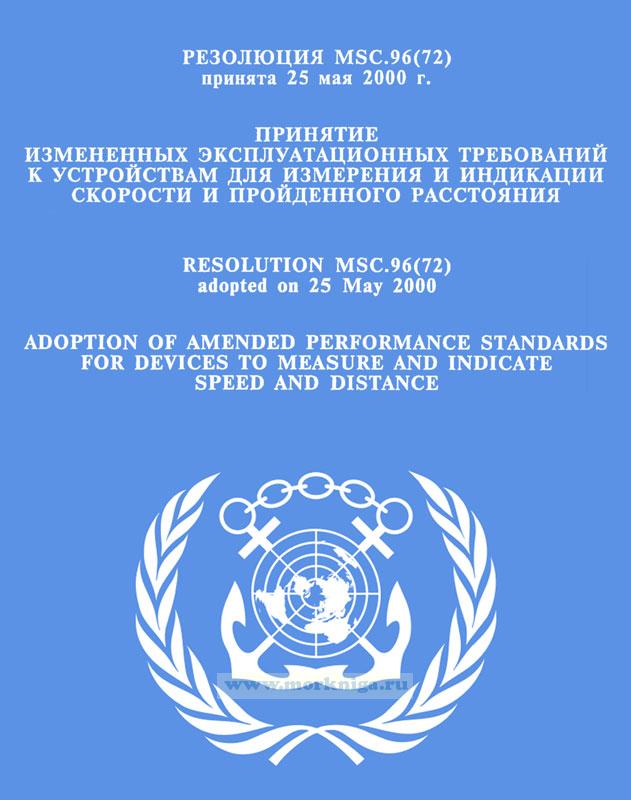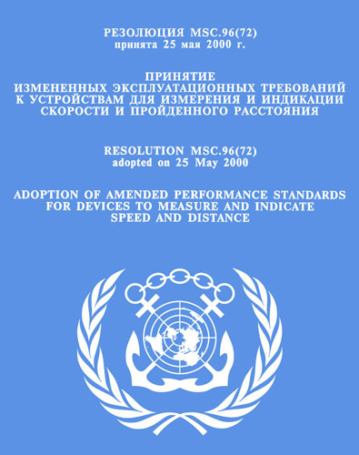 Резолюция MSC.96(72).Принятие измененных эксплуатационных требований к устройствам для измерения и индикации скорости и пройденного расстояния включена в Сборник № 15 резолюций ИМО. Collection No.15 of IMO Resolutions