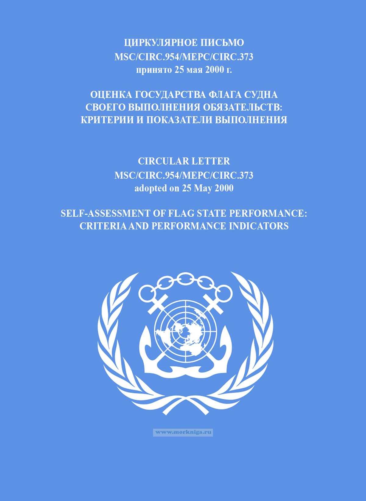 Циркулярное письмо MSC/Circ.954/МЕРС/Circ.373 "Оценка государством флага судна своего выполнения обязательств: критерии и показатели выполнения" включено в Сборник № 15 резолюций ИМО. Collection No.15 of IMO Resolutions.
