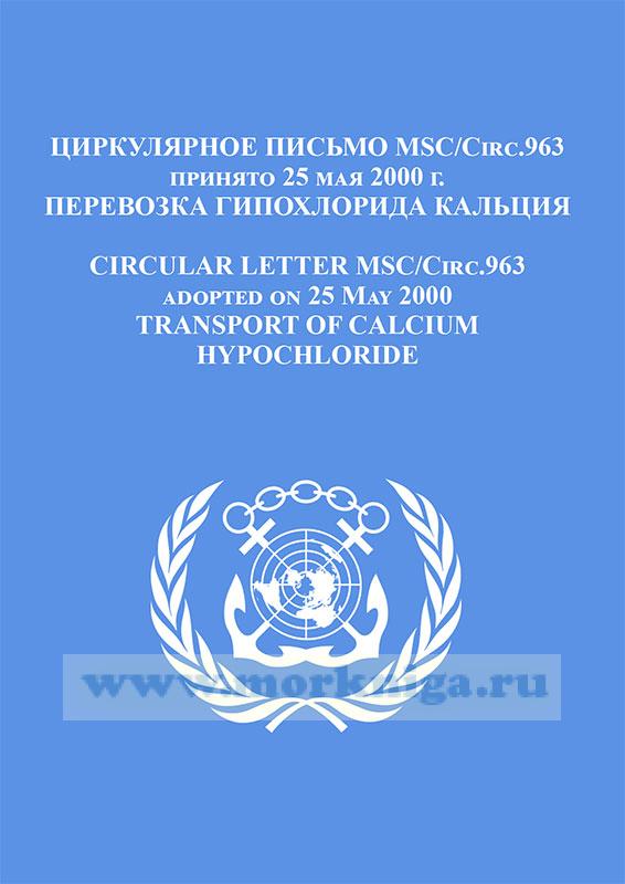 Циркулярное письмо MSC.Circ.963. Перевозка гипохлорида кальция включено в Сборник № 15 резолюций ИМО. Collection No.15 of IMO Resolutions