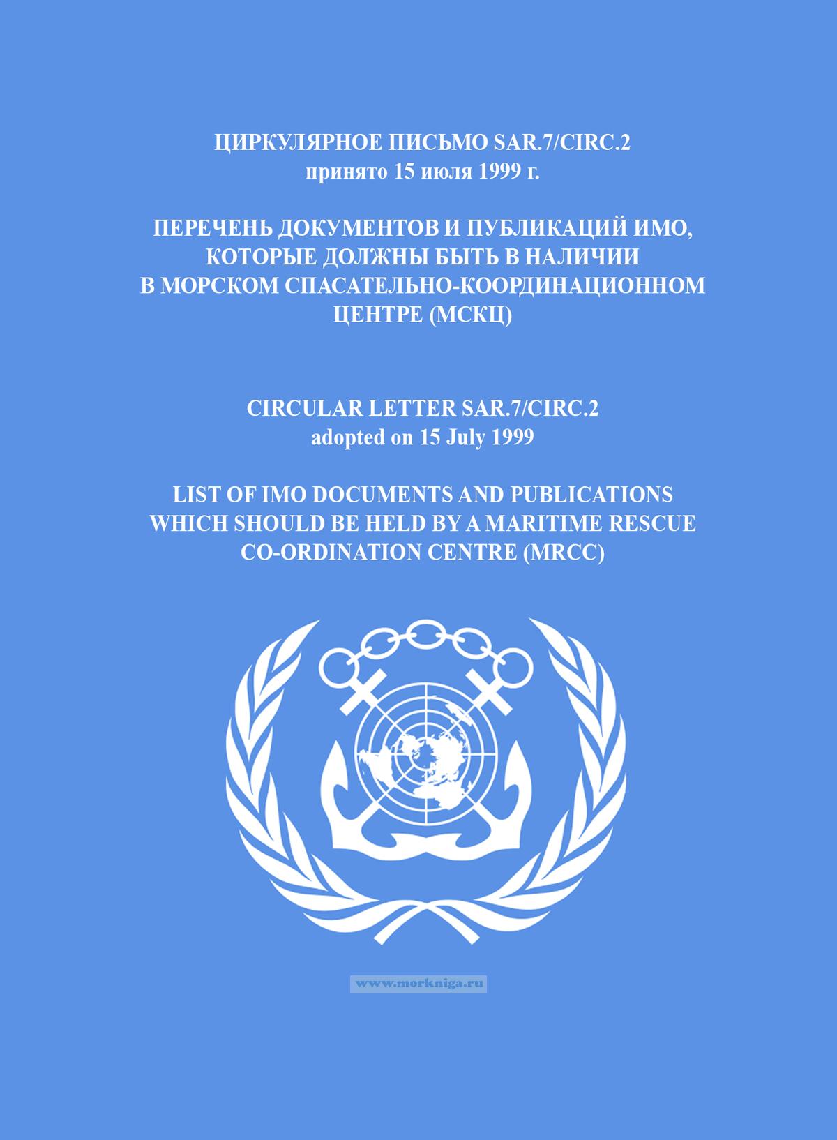 Циркулярное письмо SAR.7/Circ.2 "Перечень документов и публикаций ИМО, которые должны быть в наличии в морском спасательно-координационном центре (МСКЦ)" включено в Сборник № 15 резолюций ИМО. Collection No.15 of IMO Resolutions