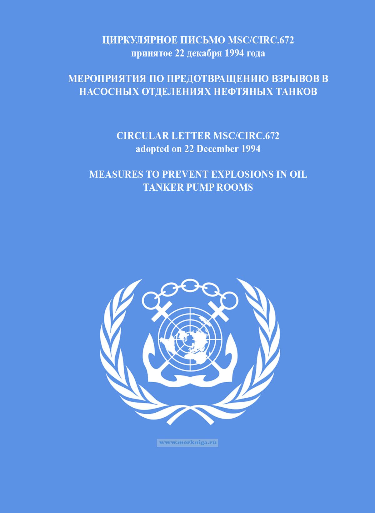 Циркулярное письмо MSC/Circ.672 "Мероприятия по предотвращению взрывов в насосных отделениях нефтяных танков" включено в Сборник № 3 резолюций ИМО. Collection No.3 of IMO Resolutions
