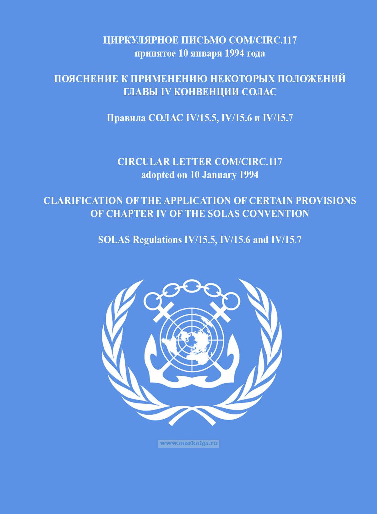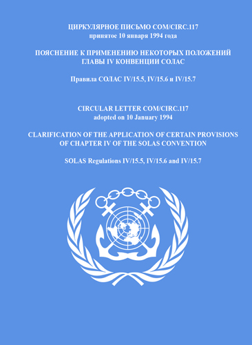Циркулярное письмо COM/Circ.117 "Пояснение к применению некоторых положений главы IV Конвенции СОЛАС" включено в Сборник № 3 Резолюций ИМО. Collection No.3 of IMO Resolutions