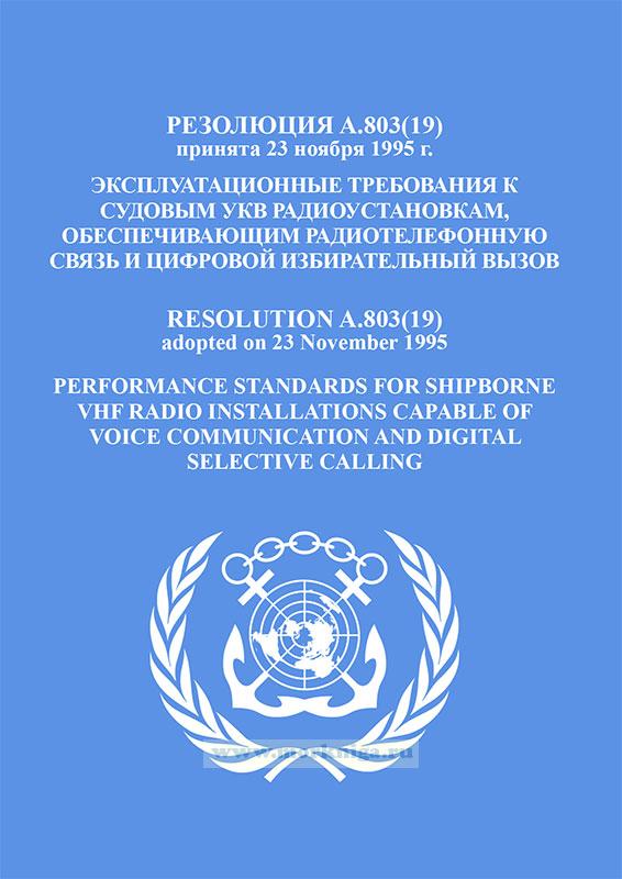 Резолюция А.803(19) "Эксплуатационные требования к судовым УКВ радиоустановкам, обеспечивающим радиотелефонную связь и цифровой избирательный вызов" включена в Сборник № 4 резолюций ИМО. Collection No.4 of IMO Resolutions