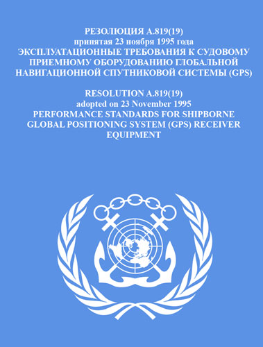 Резолюция А.819(19) Эксплуатационные требования к судовому приемному оборудованию глобальной навигационной спутниковой системы (GPS) включена в Сборник № 4 резолюций ИМО. Collection No.4 of IMO Resolutions