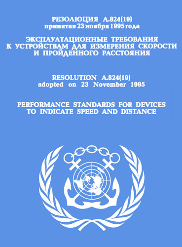 Резолюция А.824(19). Эксплуатационные требования к устройствам для измерения скорости и пройденного расстояния включена в Сборник № 4 резолюций ИМО. Collection No.4 of IMO Resolutions