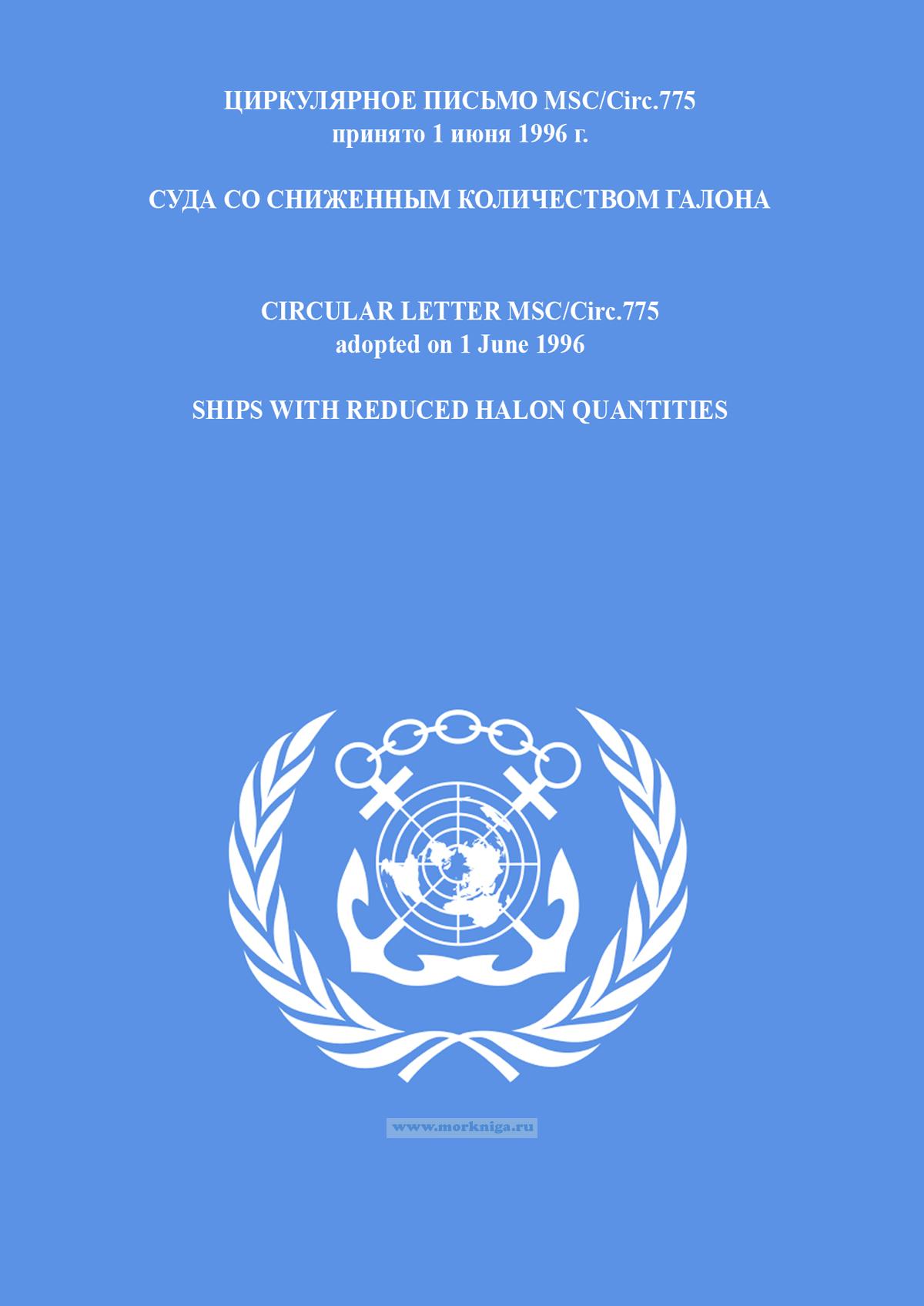 Циркулярное письмо MSC.Circ.775. "Суда со сниженным количеством галона" включено в Сборник № 7 резолюций ИМО. Collection No.7 of IMO Resolutions