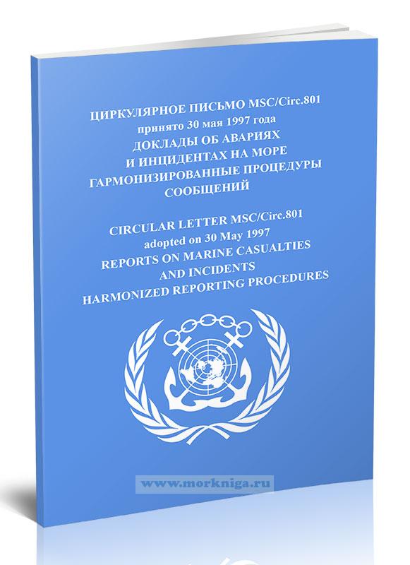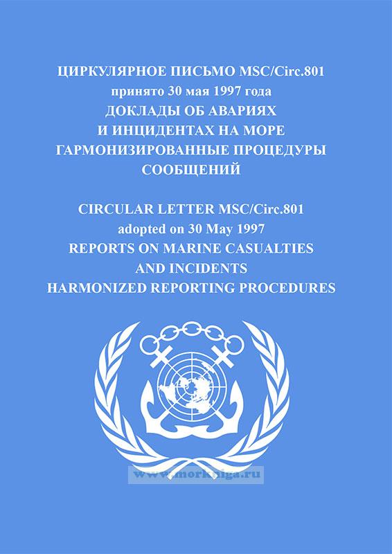 Циркулярное письмо MSC/Circ.801 "Доклады об авариях и инцидентах на море. Гармонизированные процедуры сообщений" включено в Сборник № 7 резолюций ИМО. Collection No.7 of IMO Resolutions.