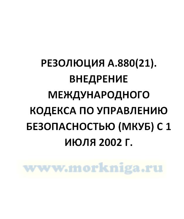 Резолюция А.880(21). Внедрение Международного кодекса по управлению безопасностью (МКУБ) с 1 июля 2002 г.