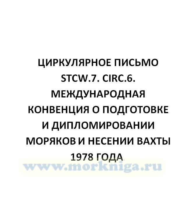 Циркулярное письмо STCW.7. Circ.6. Международная Конвенция о подготовке и дипломировании моряков и несении вахты 1978 года. Представление информации в соответствии со статьей IV и правилом I.7 Конвенции ПДМНВ, и разделом А-I.7 Кодекса ПДМНВ включено в Сборник № 11 резолюций ИМО. Collection No.11 of IMO Resolutions
